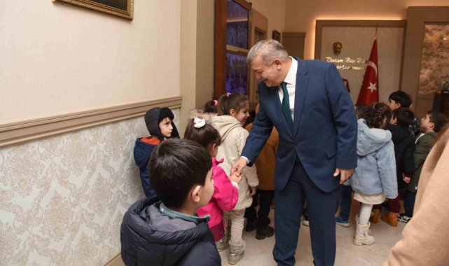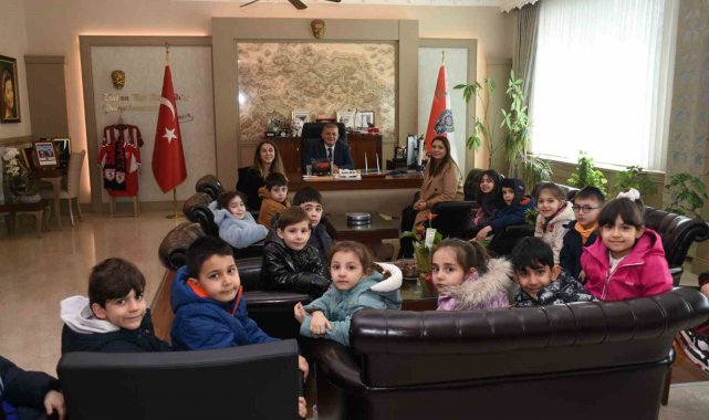 Sivas Cumhuriyet Üniversitesi Vakıf Okulları anaokulu öğrencileri, Polis Teşkilatının 180. Kuruluş Yıl Dönümü dolayısıyla İl Emniyet Müdürü Burhan Akçay'ı ziyaret etti.