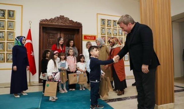 Öğretmenleri ile birlikte Vali Hamza Aydoğdu'yu makamında ziyaret eden Mimar Sinan Anaokulu öğrencileri Vali Aydoğdu'nun Ramazan Bayramı'nı kutladılar.