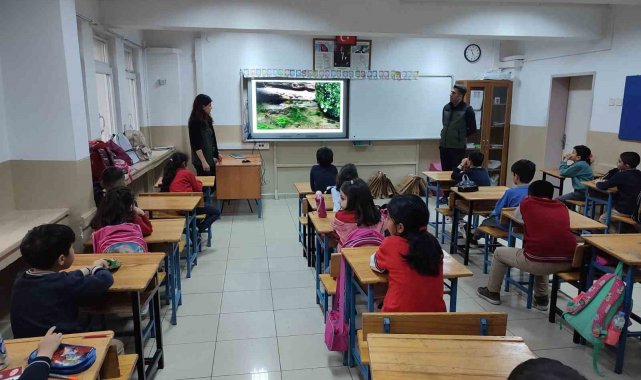 Kenan Ardıç İlkokulu'nda öğrencilere yönelik eğitim programı veren ağaçlandırma şefi Özge Aydın, çocuklara ormanın Türkiye için değerini anlattı. Eğitimde her yıl orman yangınlarında kaybedilen orman sahalarında yangınlara karşı ne gibi tedbirler alınacağı, nelere dikkat edilmesi gerektiği gibi birçok konuda çocuklara çeşitli bilgiler verildi.