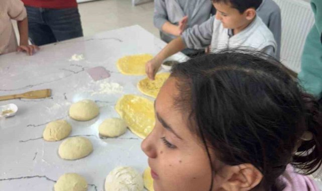Miniklerin pişirdikleri sıcacık pideler kalpleri de ısıttı