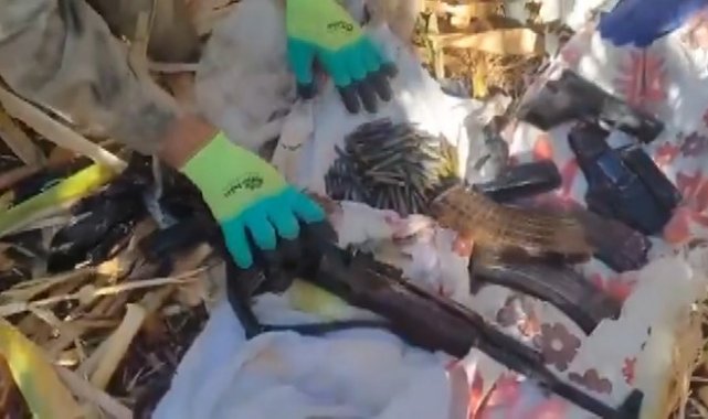 Mısır tarlasında patlayıcı madde ve silahlar ele geçirildi: 9 gözaltı