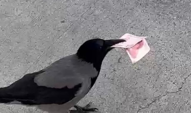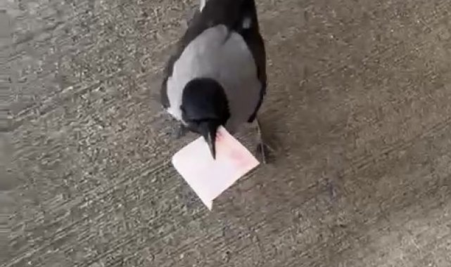 Hatay'da akaryakıt istasyonunun müdavimi olan kargayı, poğaçayla besleyen Taha Genç'in kargaya 10 TL'sini kaptırdığı anlar gülümsetti. Mizah amaçlı çekilen görüntülere ilişkin Genç, "Belki müşterilerden para getirir diye 'eğitim' olsun dedik" ifadelerini kullandı.