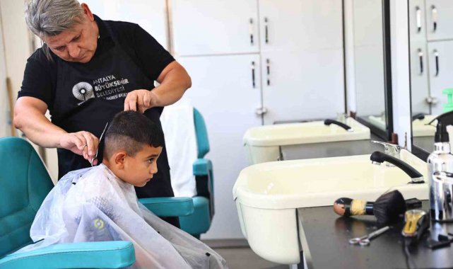 Antalya Büyükşehir Belediyesi'nin kuaför ve berber olmayan mahallelerde vatandaşlara hizmet veren Mobil Kuaför Tırı, yaz aylarıyla birlikte Antalya'nın yüksek noktalarda ve yaylalarda vatandaşlara ücretsiz saç kesimi ve kişisel bakım hizmeti sunuyor.