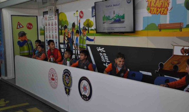 Bedesten bölgesinde kurulan eğitim tırında, çocuklara trafik kuralları, emniyet kemeri kullanımı, yaya geçidi güvenliği, trafikte doğru davranış biçimleri ve temel trafik işaretleri uygulamalı olarak anlatıldı.
