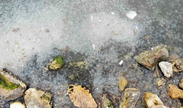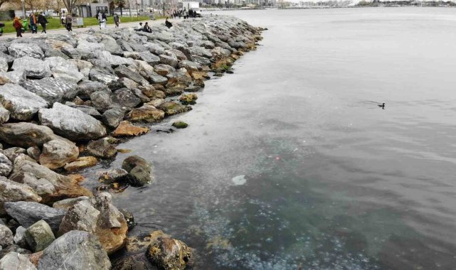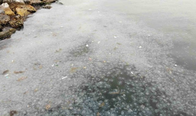 Kadıköy Moda Sahili'nde deniz yüzeyi denizanalarıyla kaplandı. Özellikle kayalıklara yakın bölgelerde yoğun şekilde görülen denizanaları dron ile görüntülendi.