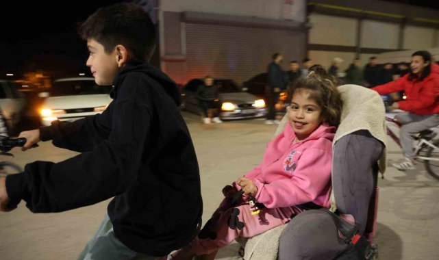 Otomobil tutkunları, etkinliğe gelen minikler için şarkı açtı. Çocuklar alkışlarla uğurlanırken, ortaya yürekleri ısıtan görüntüler çıktı.