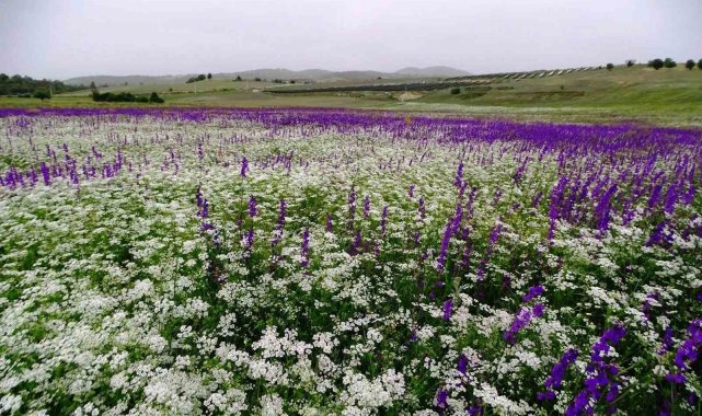 Mor renkli yabani otlar görsel şölen sunuyor