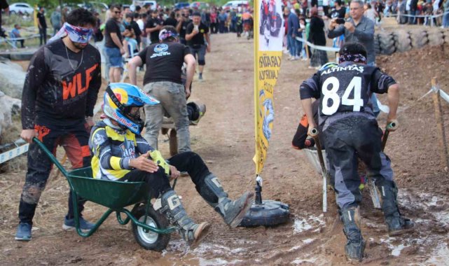 Motokros yarışında motosikletle birinci, diğer yarışmada eşekle sonuncu oldu