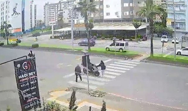 Mersin'de motokuryenin yaya geçidinden geçmeye çalışan kız çocuğuna çarptığı kaza güvenlik kamerasına yansıdı. Hastaneye kaldırılan çocuğun durumunun iyi olduğu öğrenildi.