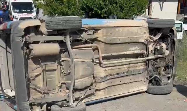 Motor ehliyetli otomobil sürücüsünün çarptığı zabıta aracı devrildi: 2 yaralı