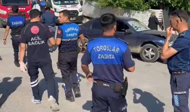 Kaza, merkez Toroslar ilçesi Çukurova Mahallesi'nde meydana geldi. Alınan bilgiye göre, M.C.M.'nin kullandığı 33 SD 079 plakalı otomobil, ara sokakta seyir halindeki Toroslar Belediyesine ait 33 TR 214 plakalı zabıta aracına çarptı. Çarpmanın etkisiyle zabıta aracı yan yatarken, biri zabıta personeli 2 kişi yaralandı. Yaralılar, olay yerine çağrılan ambulansla hastaneye kaldırıldı.