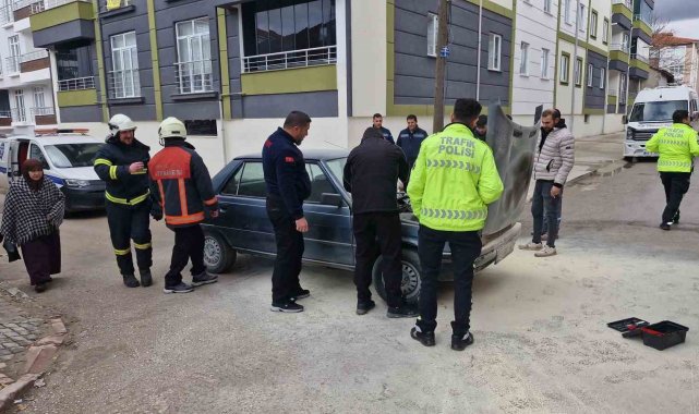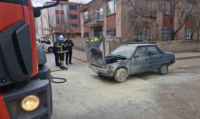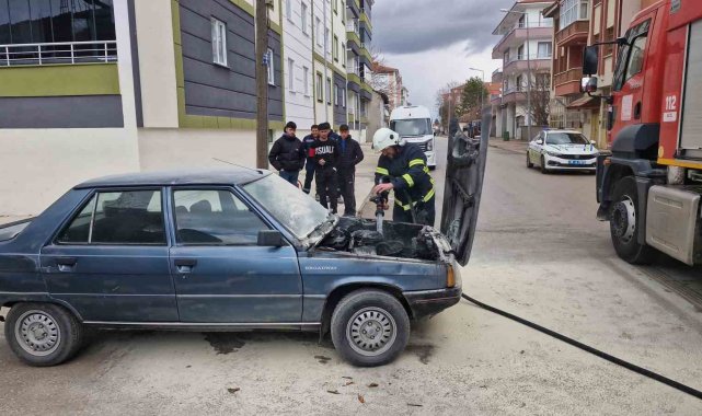 Motor kısmı tutuşan otomobili yanmaktan itfaiye kurtardı