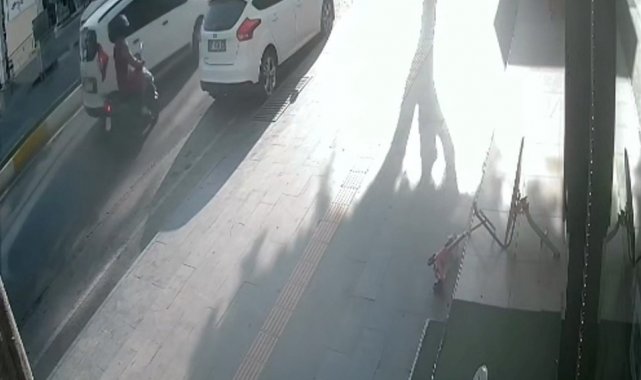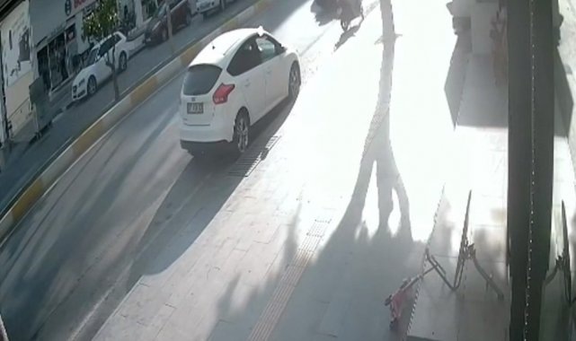 Kaza anı çevrede bulunan bir iş yerinin güvenlik kamerasına yansırken görüntülerde elektrikli bisikletin hafif ticari aracın sağ tarafında ilerlediği ve aracın arka kısmına temas ederek devrildiği, kazayı fark etmeyen hafif ticari aracın ise durmayarak yoluna devam ettiği görüldü.