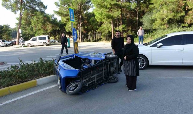 Antalya'nın Manavgat ilçesinde 3 tekerli motorlu bisiklet ile otomobilin çarpışması sonucu meydana gelen kazada, motorlu bisiklette yolcu olarak bulunan 1 kişi yaralandı.