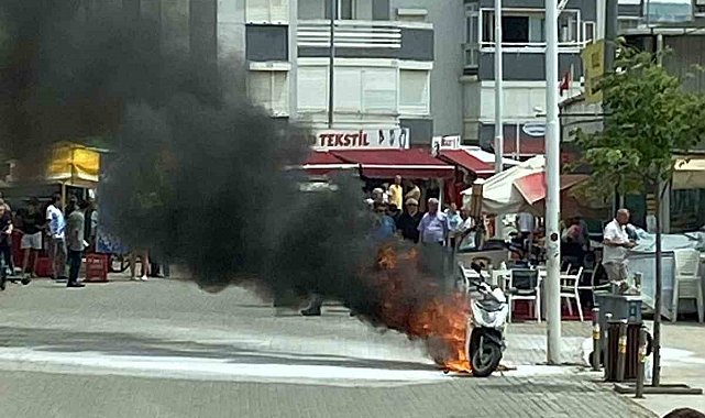 Bursa'nın Gemlik ilçesinde park halindeki motosiklet alev alev yandı.