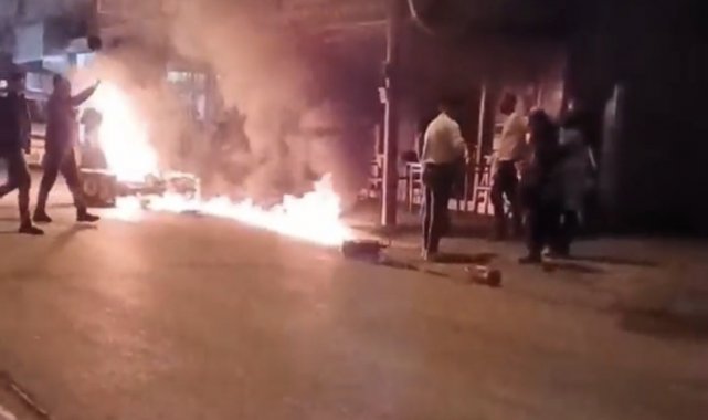 Motosiklet alev alev yandı