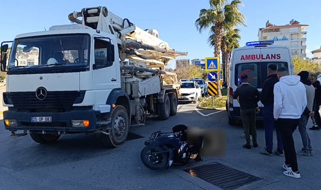 Antalya'nın Manavgat ilçesinde motosikletin beton kamyonuna çarpması sonucu meydana gelen trafik kazasında 1 kişi yaralandı.