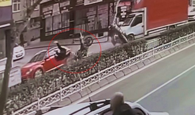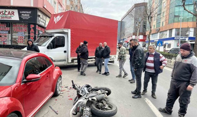 Motosiklet dönüş yapan kamyonete ve park halindeki otomobile çarpıp takla attı