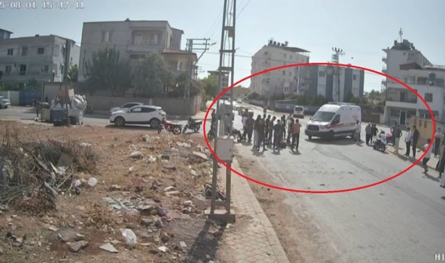 Kaza, Reyhanlı ilçesi Bahçelievler Mahallesi 323. sokakta yaşandı. Trafikte seyir halde ilerleyen minibüs ile motosikletle çarpıştı. Motosikletin, minibüse ok gibi saplandığı kaza an be an güvenlik kamerasına yansıdı. Kazada motosikletteki 2 şahıs yaralandı. Kazanın ardından çevredekilerin 112 Acil Çağrı Merkezi'ne bildirilmesi üzerine olay yerine polis ve ambulans sevk edildi. Kısa sürede bölgeye gelen sağlık ekipleri, yaralılara ilk müdahalenin ardından hastaneye kaldırıldı.