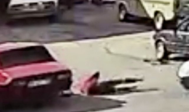 Öte yandan, kaza anı bir iş yerinin güvenlik kamerasına yansırken, görüntülerde motosikletin araca çarpmamak için manevra yaptığı ve park halindeki otomobile çarptığı görülüyor.