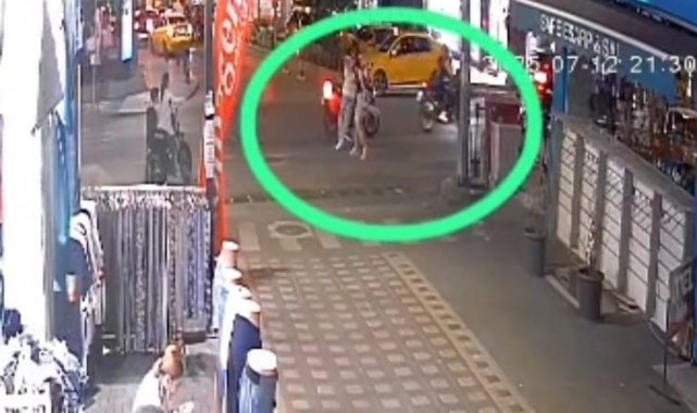 Motosiklet sürücüsü ile yaya arasında çıkan kavgada tekme ve yumruklar havada uçuştu
