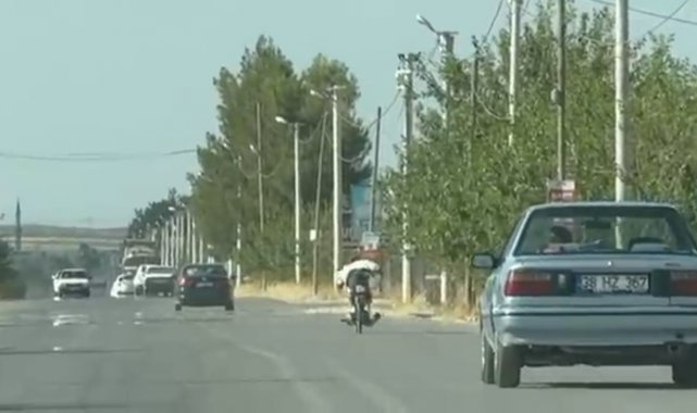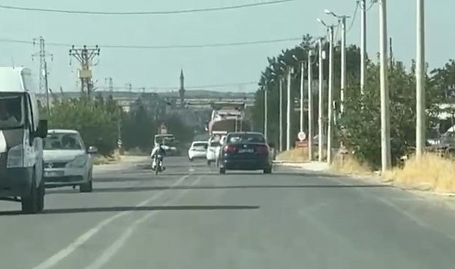 Edinilen bilgiye göre olay, Şanlıurfa'nın Suruç ilçesine bağlı Aligör Mahallesi'nde yaşandı. Trafikte seyreden sürücüler, motosikletin üzerine uzanarak süren bir sürücü fark etti. Tehlikeli bir şekilde trafikteki araçları sollayan sürücü adeta ölüme davetiye çıkarttı. Tehlikeye aldırış etmeden ilerleyen motosikletli, Suruç ilçe girişinde bulunan Kent Güvenlik Yönetim Sistemleri (KGYS) kameralarına yaklaşınca motosikletin üzerinden doğrularak yoluna devam etti. O anlar ise başka bir sürücünün kamerasına yansıdı.