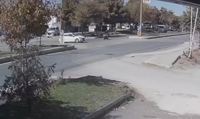 Öte yandan kaza anı bir iş yerinin güvenlik kamerasına anbean yansıdı. Görüntülerde motosikletin araca yandan çarpmasının ardından, otomobilin arka bölümünün savrulduğu görülüyor. Motosiklet sürücüsünün kazanın etkisiyle metrelerce havada savrulduğu kayıtlarda yer alıyor.