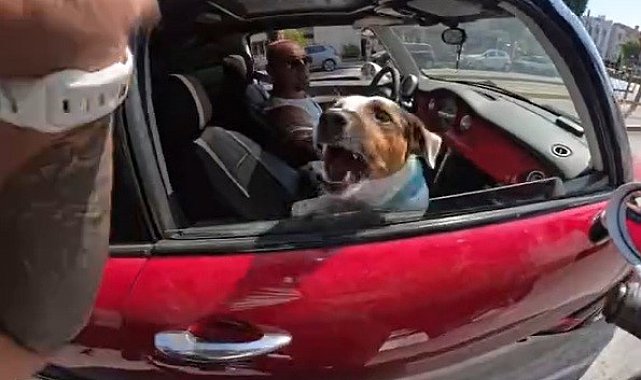 Eskişehir'de yaşayan motosiklet sürücüsü Erkan Keser, Odunpazarı ilçesi Vişnelik Mahallesi'ndeki Öğretmenler Bulvarı'nda seyrederken, 55 KH 205 plakalı bir aracın içerisinde iki köpek gördü. Oldukça sevimli olan köpekleri aracın açık camından elini sokarak sevmek isteyen Keser, beklenmedik bir tepki ile karşılaştı. Köpeklerden biri motosiklet kullanıcısına havladı. Köpeğin reaksiyonu karşısında şoke olan Erkan Keser gülümseyerek "Ne oluyor" derken, köpek ikinci kez havlayarak motosiklet kullanıcısını korkuttu. Erkan Keser'in kask kamerasına anbean yansıyan komik olay sonrası, hem araç hem de motosiklet kullanıcısı kahkaha attı. Köpeğin tepkisinden sonra Erkan Keser, olay yerinden uzaklaştı.