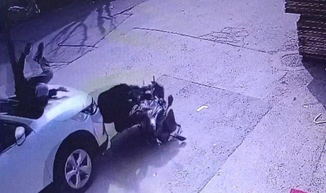 Kaza, saat 16.00 sıralarında Mahmudiye Mahallesi Sanayi Caddesi'nde meydana geldi. Cadde üzerinde seyreden Recep K. (81) yönetimindeki 16 ADB 826 plakalı otomobil, Kılıç Sokak'tan çıkan İlker B. (20) yönetimindeki 34 KFR 287 plakalı motosiklete yandan çarpıp 10 metre sürükledi. Kazada motosikletin sürücüsü yaralanırken, motosikletteki yolcu ise kayıplara karıştı. Yaralı kaza yerine sevk edilen ambulansla İnegöl Devlet Hastanesine kaldırıldı. Kaza anı ise bir iş yerinin güvenlik kamerasına saniye saniye yansıdı.