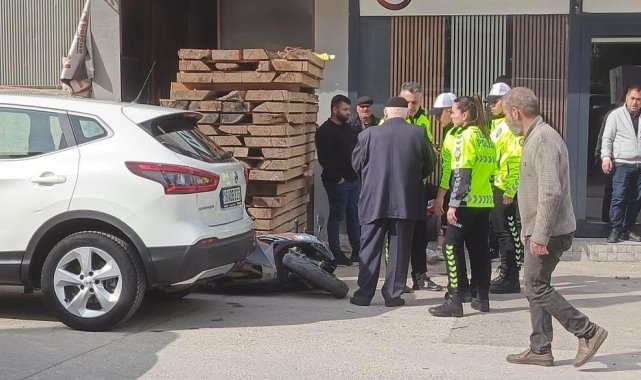 Bursa'nın İnegöl ilçesinde meydana gelen kazada otomobil ile çarpışan motosikletin sürücüsü yaralandı. Kaza anı bir iş yerinin güvenlik kamerasına saniye saniye yansıdı.