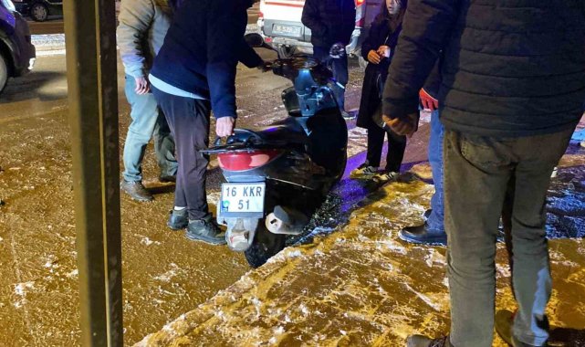 Kaza, saat 22.00 sıralarında Kemalpaşa Mahallesi Adnan Menderes Bulvarı üzerinde meydana geldi. Cadde üzerinde seyreden Harun K. (32) yönetimindeki 16 KKK 51 plakalı motosiklete, arkasından gelen henüz sürücüsü ve plakası belirlenemeyen bir otomobil çarptı. Devrilen motosiklete daha sonra yine arkadan gelen Muhammed S. (33) yönetimindeki 16 BIS 445 plakalı otomobil buzlanma nedeniyle kayarak çarptı. Bir dakika içinde iki otomobilin çarptığı motosikletin sürücüsü ve arkasında bulunan yolcu Merve C. yaralandı. Yaralılar kaza yerine sevk edilen ambulansla İnegöl Devlet Hastanesi'ne kaldırıldı. Kazanın ardından ismi öğrenilemeyen diğer araç sürücüsü kaçarak kayıplara karıştı.