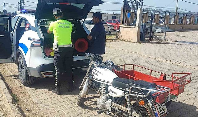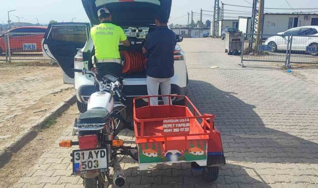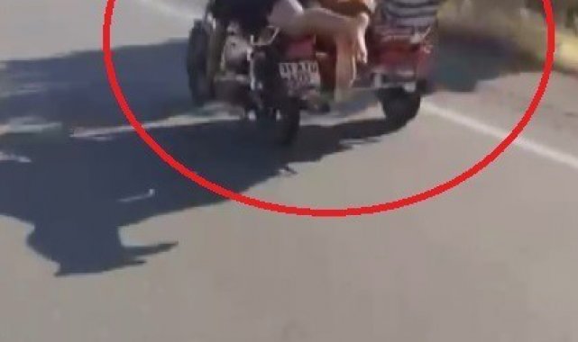 Hatay'da sepetli motosikletin üzerine yatarak yanındaki 2 kişinin de canını hiçe sayan sürücüye 24 bin 997 TL cezai işlem uygulandı.