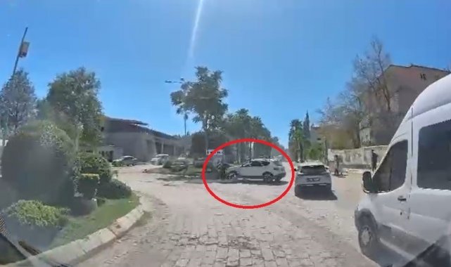 Hatay'ın Kırıkhan ilçesinde otomobil ile motosikletin çarpışma anı araç içi kamerasına yansıdı.
