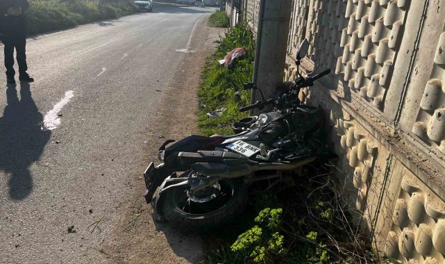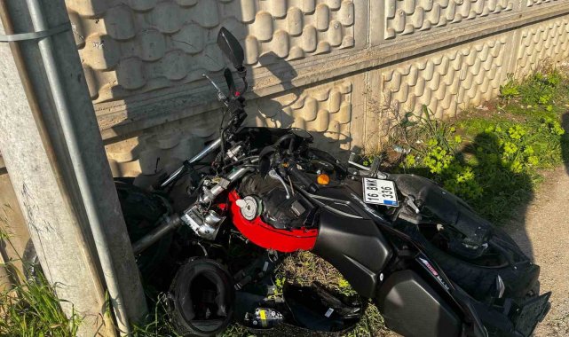 Motosikletin kontrolden çıkması ile birlikte genç sürücü duvara ve direğe çarptı