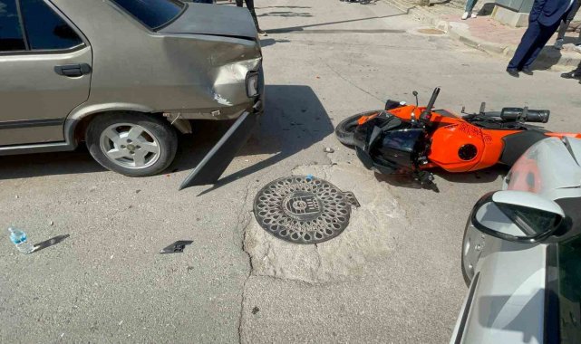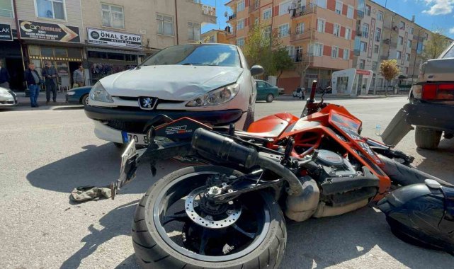 Karaman'da dönüş yapmakta olan otomobille çarpışan motosikletin sürücüsü yaralandı. Kaza anı ise kameraya yansıdı.