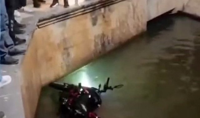 Şanlıurfa'da sürücüsünün kontrolünden çıkan motosiklet Balıklıgöl'e düştü.