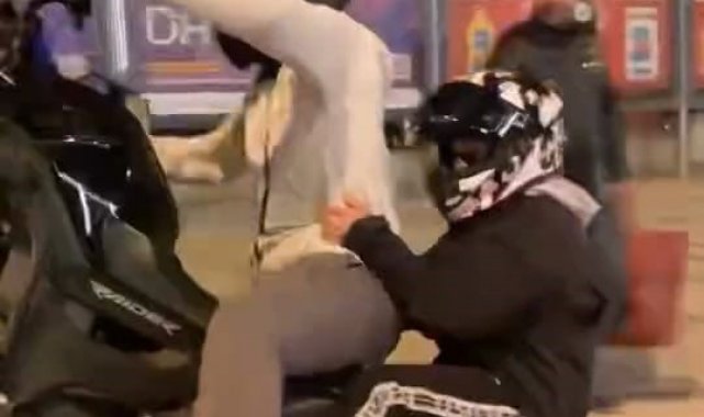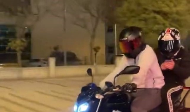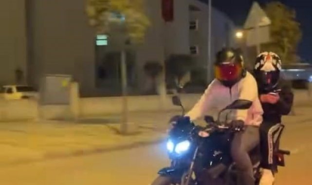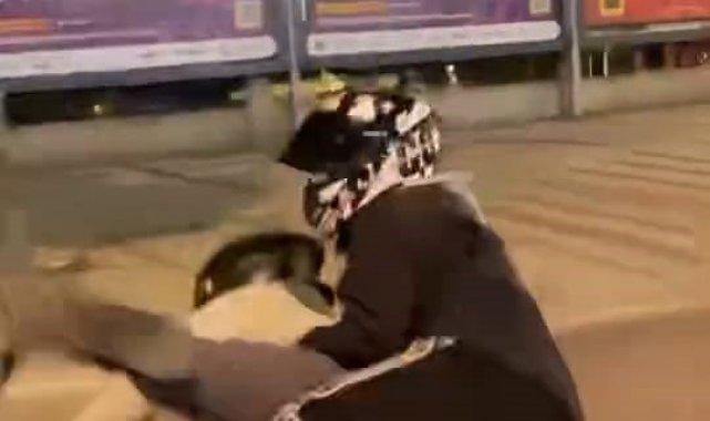 Kaza anı, çevredeki bir sürücünün cep telefonu kamerasına yansıdı. Görüntülerde, motosikletin ön tekerleğini kaldırmaya çalıştığı sırada devrildiği ve iki kişinin yola savrulduğu anlar yer alıyor.