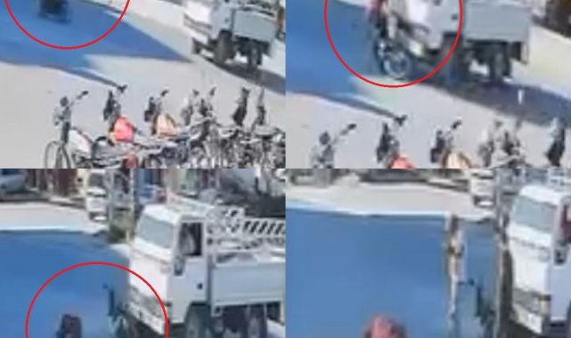 Motosikletle kamyonet çarpıştı, kaza anı kameraya yansıdı