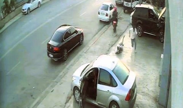 H.B.'nin 2 yerinden vurulduğu, yanındaki arkadaşının ise yara almadan kurtulduğu silahlı saldırı anı, bir iş yerinin güvenlik kamerasına yansıdı. Görüntülerde iki arkadaşın araçtan indiği, saldırganların motosikletle gelip ateş ettikleri ve yaralının bir başka otomobilin arkasına sığındığı anlar yer aldı.