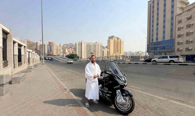Motosikletle umre yolculuğunu tam 15 bin kilometreyle tamamladı