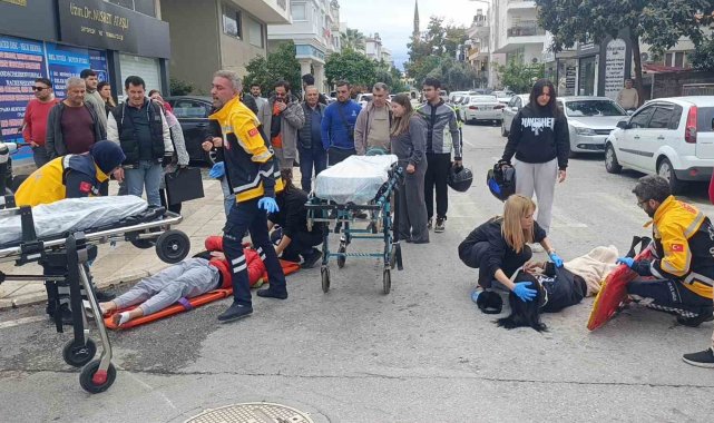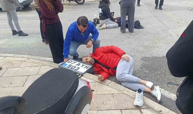 Antalya'nın Manavgat ilçesinde motosiklet ile motorlu bisikletin çarpışması sonucu meydana gelen kazada iki motosikletin çarpışması sonucu 2 kişi yaralandı. Kaza anı ise güvenlik kamerasına saniye saniye yansıdı.