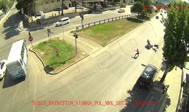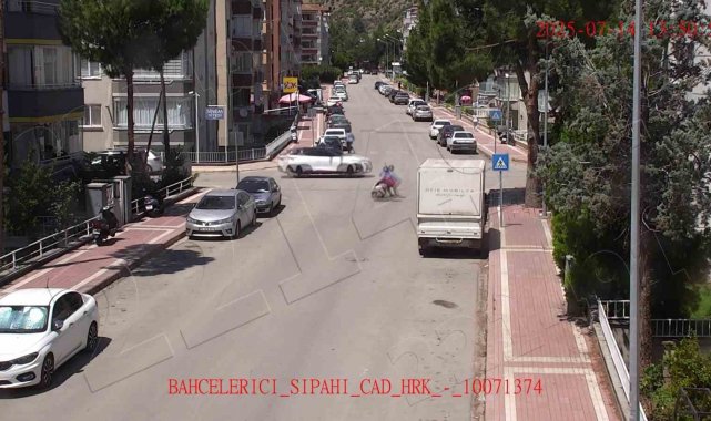 Eski otogar mevkiinde yaya geçidinden geçen iki yayadan birine hızla gelen motosiklet çaptı. Yaya ve sürücünün metrelerce sürüklendiği anlar kameralara yansıdı.