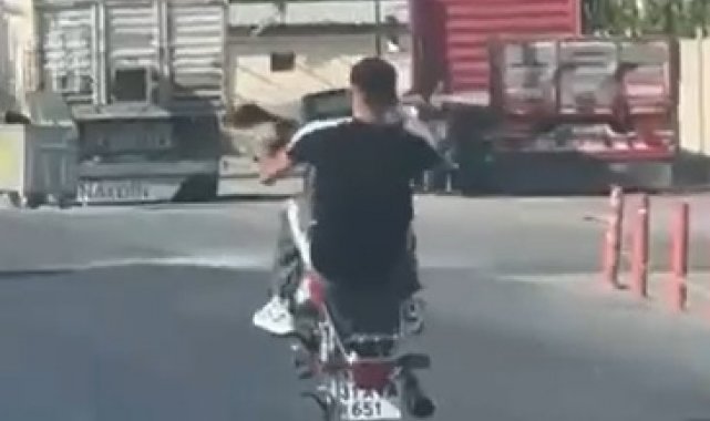 Hatay'da motosikletle 5 saniyelik akrobatik hareketler yaparak trafiği tehlikeye sokan sürücüye 21 bin 837 TL cezai işlem uygulandı ve aracı trafikten men edildi.