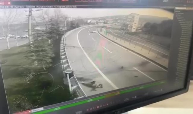 Kocaeli'nin Karamürsel ilçesinde otomobille çarpışarak demir bariyerlere savrulan motosikletlinin öldüğü feci kaza kameraya yansıdı.