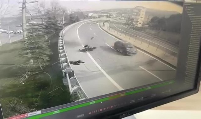 Kazaya ilişkin görüntü ortaya çıktı. Görüntülerde kaza anı ve motosikletlinin savrulma anları yer aldı.