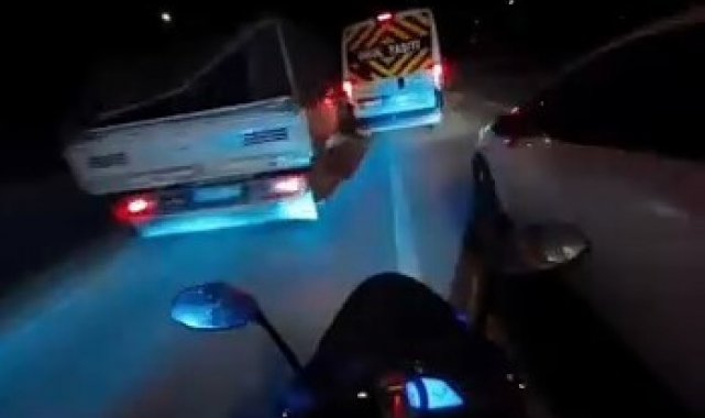 Motosikletlinin tehlike atlattığı anlar kamerada