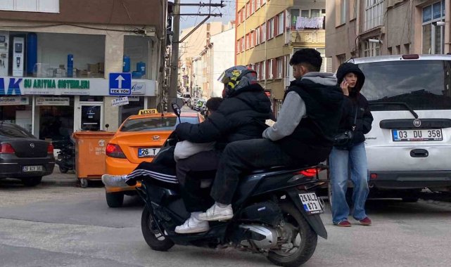 Kapasitesinin üzerinde yolcu ile seyahet eden motosiklet daha sonra cadde üzerinden ayrılarak gözden kayboldu.