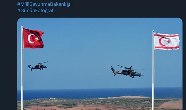 MSB, içerisinde KKTC ve Türk Bayrağı'nın bulunduğu bir fotoğrafı "Unutana Hatırlatırız" notuyla paylaştı. Ayrıca fotoğrafta bayraklar arasında, yerli imkanlarla üretilen, ATAK helikopterler de yer aldı.
