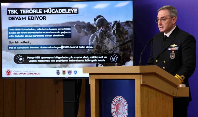 1 PKK'lı teröristin daha teslim olduğunu bildiren Tuğamiral Aktürk, "Pençe-Kilit operasyon bölgesinde tespit edilen teröristlere ait mağaralarda çok sayıda silah, mühimmat ve yaşam malzemesi ele geçirilerek kullanılamaz hâle getirilmiştir" şeklinde konuştu.