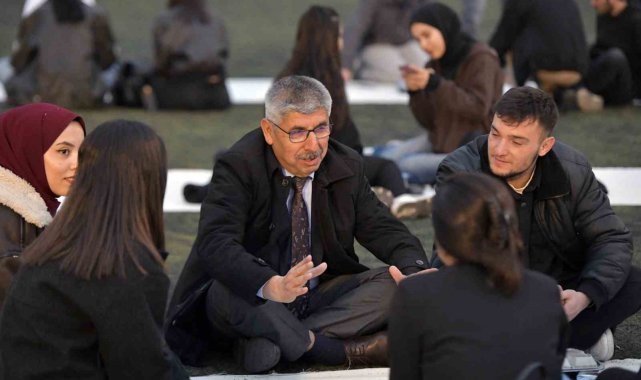 Tüm öğrencilerin ve personelin katıldığı iftar programı, açık havada ve yer sofrasında yapıldı.